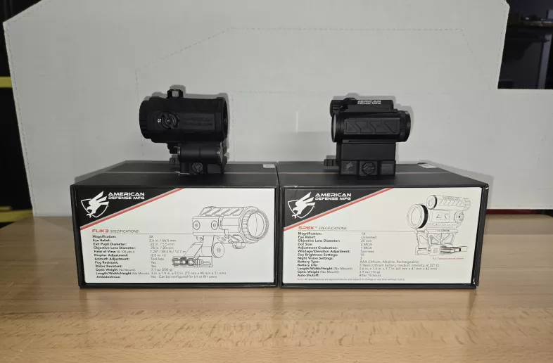 Like new ADM SPEK red dot and FLIK 3x magnifier. Great setup quick and easy on and off , great quality comes as package with all accessories included in boxes.