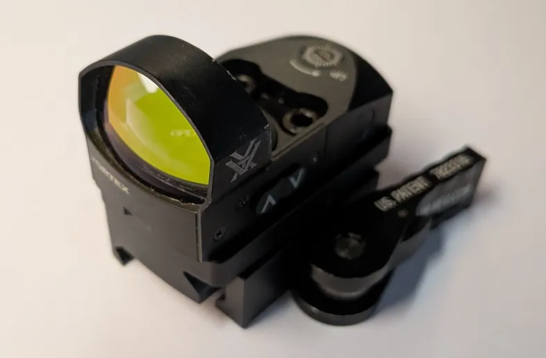 Selling a vortex 3moa red dot sitting on a QD mount. Only used sparsely on a 22 but works great. Some minor wear as can be seen in images but nothing that effects usage.