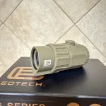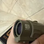 For sale is a EOTech G45 5x magnifier in Tan. Comes with the STS Mount. The magnifier was used at a range only once and the rest of its short time with me was spent on a long gun during dry fire. There are some scratches on the QD lever of the STS mount as well as a tiny little nick on the edge of the magnifier, see images. The lenses are in perfect condition with no marks or scratches whatsoever.