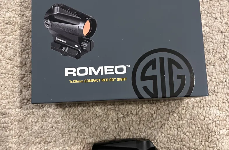 Sig Sauer Romeo 5X red dot with picatinny mount. In excellent condition with no dents or scratches on the body. In good working order.