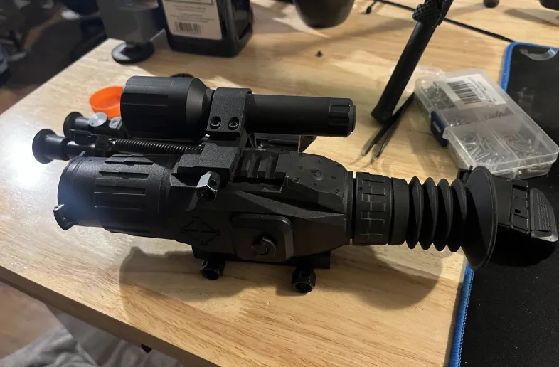 Works fine. Has ir illuminator. Switching up my coyote rifle so time to sell.