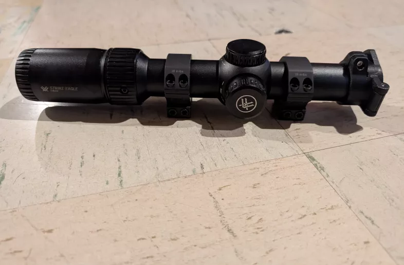 Selling my gently used Vortex Strike Eagle 1-6x24 optic with Vortex Pro medium rings. Glass is crystal clear, turrets are crisp, and illumination works perfectly. It’s been mounted and used a few times but never abused — overall in excellent condition.