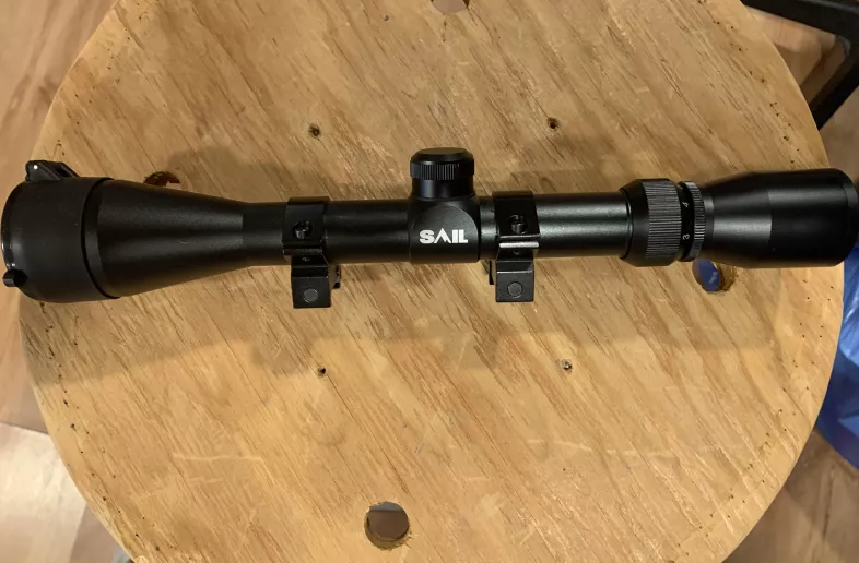 Sail scope 3-9x40 with picatinny rings. Missing 1 of the (smaller) flip cover.