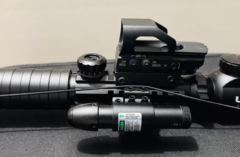 Comes also with a detachable red/green dot and a laser beam lamp (also detachable).