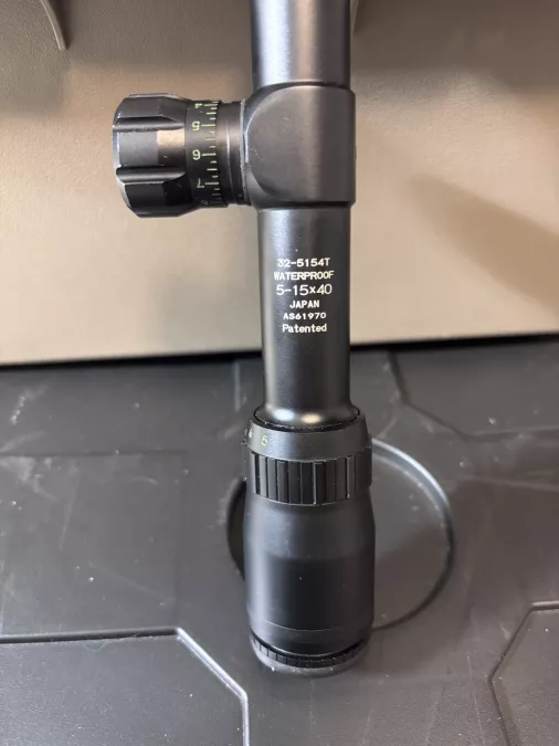 High-quality Bushnell Elite 3200, model 5-15×40 AO, made in Japan. Clear glass, adjustable objective, waterproof/fog-proof, and built tough. Excellent overall condition.