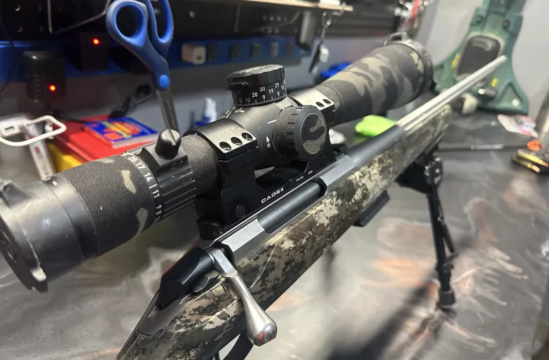 Mounted on current hunting rifle, used one season, just looking to down grade. Has a camo skin on it for great protection. Glass is perfect, scope is perfect. Comes with original box and flip covers. Will throw in Cadex rings for an extra 200$.