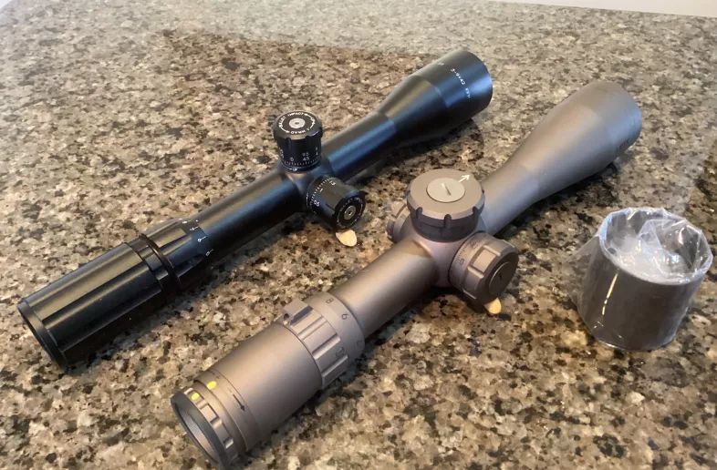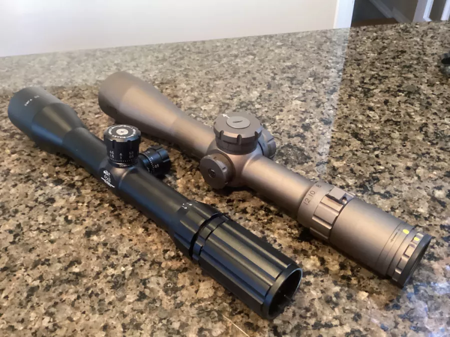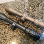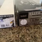 First up, the Bushnell. The 3-12X44 in Flat Dark Earth finish with G3 reticle. I bought it a few months ago and it sat on a sporter weight 223 for a couple hundred rounds. I decided I prefer a 1 inch scope for that particular rifle.