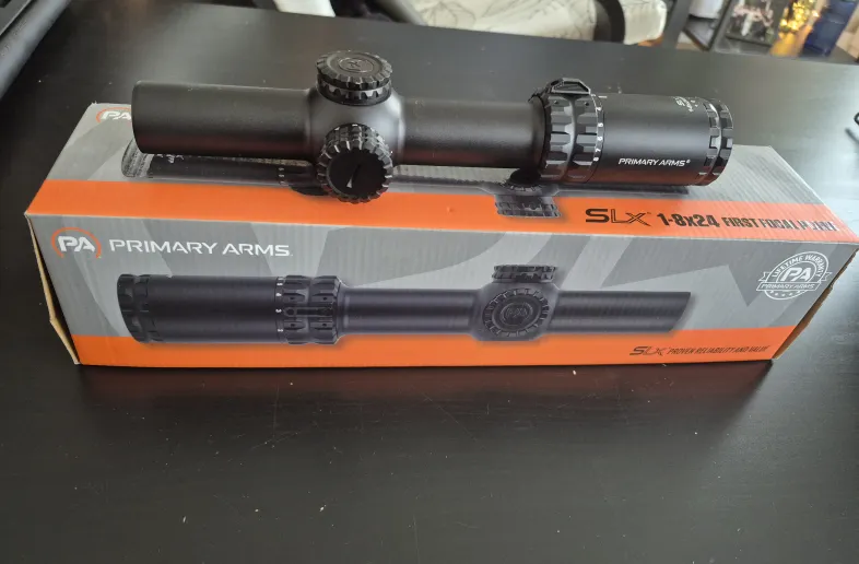 Primary Arms 1-8 FFP, SLX, grif-x-mil reticle, with Warne QD rings, and lense caps