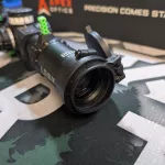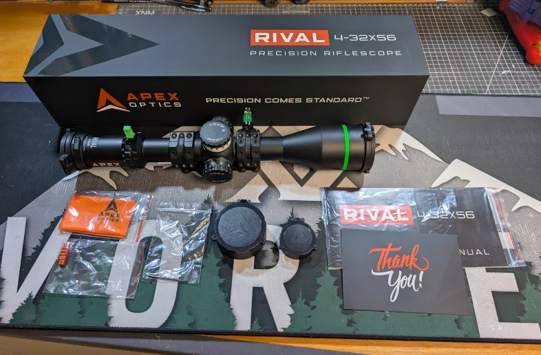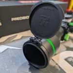 Has green 3d printed throw lever and green decal over the orange "Beauty ring." Both of these are easily removed, comes with factory throw lever, sun shade, original covers + tenebrex, box, manual etc.