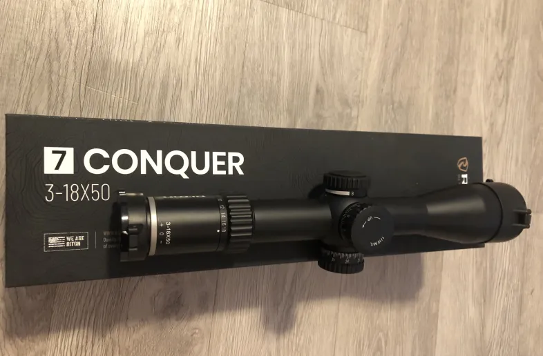 The 7 Conquer 3-18x50 features a First Focal Plane (FFP), T3 reticle with Riton HD/ED glass(mad in Japan), integrated throw lever and Riton's advanced R7 Zero Stop turrets. With 46 MRAD of internal elevation adjustment, the 7 Conquer 3-18x50 is a versatile, high performance scope to conquer the most difficult distance shooting.