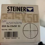 Up for sale is my Steiner GS3 3–15x50 with S1 reticle. An excellent hunting optic. Steiner is well known for outstanding glass clarity. This scope is lightweight and balances very well on a hunting rifle. Comes with two sets of rings for mounting to the rifle.