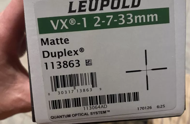 Like new, Leupold VX1 2-7x33 no ring marks, comes with paperwork and bikini cover. $400