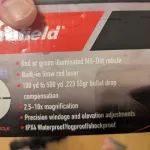 Firefield 2.5-10x40. Laser scope 120.00 Posted: Mar 14, 2026 Address: Grande Prairie, AB, T8V2E2 Category Optics Rifle Scopes Lightly used firefield scope. Has features as per picture. Visits: 26 Read our Online Safety Tips
