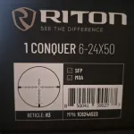 2nd generation of Riton 1 Conquer 6-24x50mm, MOA, 1-inch, SFP riflescope. Received in January 2026 as warranty replacement from the older model. Never used, never mounted.