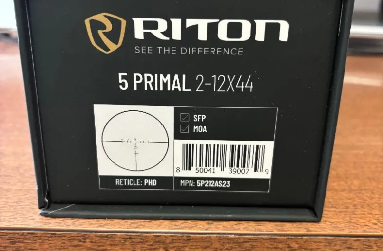 New in box Riton 5 PRIMAL 2-12×44mm, SPF MOA PHD reticle. Also comes with Riton 30mm rings. $550 shipped.
