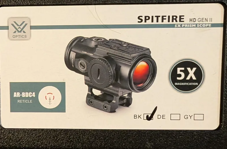 Selling a Vortex Spitfire 5x Clone. This is a Prism scope with .556 Reticle. Comes with low and high mounts red illuminated reticle.