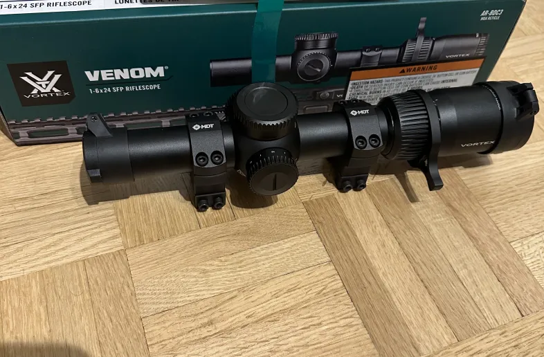 Vortex venom 1-6x24 with mdt ring already installed come with box and I have another vortex venom 1-6x24 with ring installed but no box