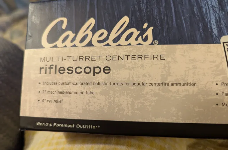Cabela's multi turret rifle scope for 308, 3 to 12 by 40, parallax adj, 6 extra turrets, 1 in tube, 4 in eye relief. New in box.