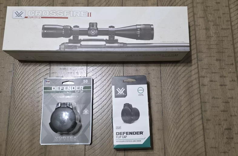 Vortex Crossfire II 6-18x44 AO DEAD HOLD BDC (MOA). Also included Vortex Defender lens covers.