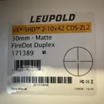 Leupold vx5hd 2-10 with fire dot. The CDS dial is still available. It’s been mounted and to two range days. It has a good battery and everything that came in the box with it.