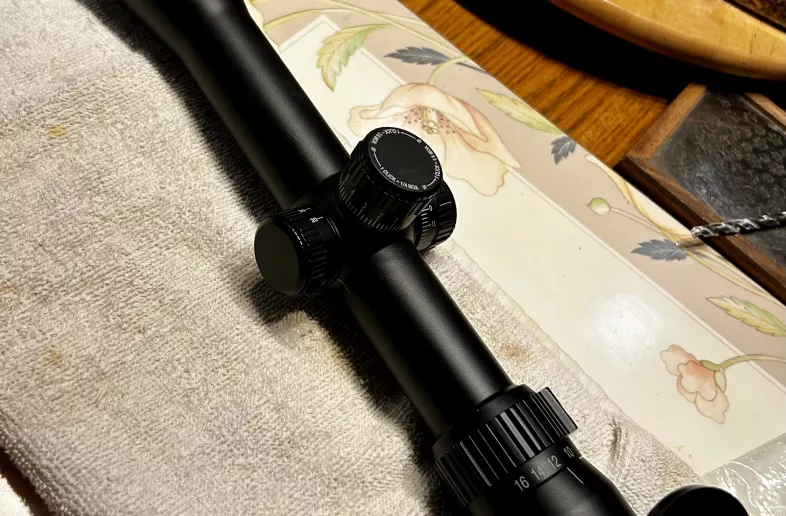 This is a take off. Only mounted once. Excellent condition with the tiniest of ring marks. Includes Butler Creek caps. No box. Retail is $589 @GoTenda.ca
