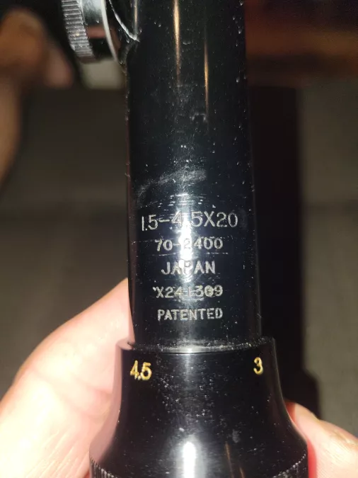 1.5 - 4.5 x 20 made in Japan has some ring marks on tube clear optics with fine crosshair