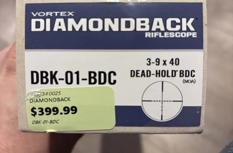 Brand new Vortex diamondback 3-9x40 320.00 Posted: Feb 1, 2026 Address: Pakenham, ON, K0A2X0 Category Optics Rifle Scopes Brand new in box. Model DBK-01-BDC Visits: 55 Read our Online Safety Tips