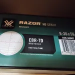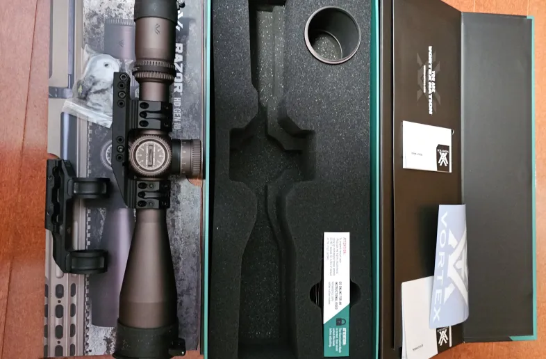 Nice shape razor gen 3 6-36 by 56, 34mm tube, with box papers and everything else. Condition is good, had to replace one cap with another oem vortex defender. Always had a scope wrap on so its in nice shape, used maybe 10 times.