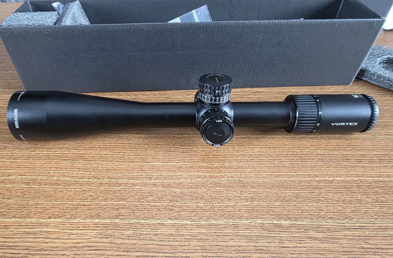 Mounted on one of my rifles then removed and replaced before I shot it. In box with Sunshade, lens covers and items as new.