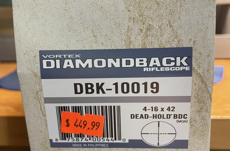 Like new vortex diamondback HP 4x16x42 bought and mounted by local gun shop last fall only used to sight in never hunted with !Want to upgrade to 50mm reason for selling ! Located in Rouleau sk.!