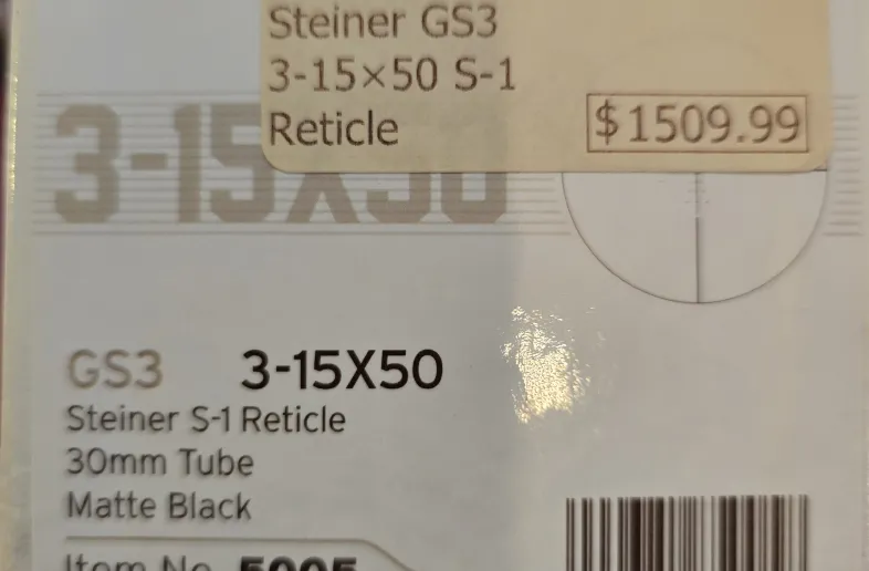 Steiner GS3, 3-15x50, S1 reticle and 30 mm tube. Scope has a couple tiny scratches but overall in really great condition. Bought new by me and made 4 trips to the range then I traded the rifle it was on. Properly mounted with a Wheeler professional scope mounting kit. $1000, shipped anywhere for an extra $25. Text or calls will probably get the fastest response.
