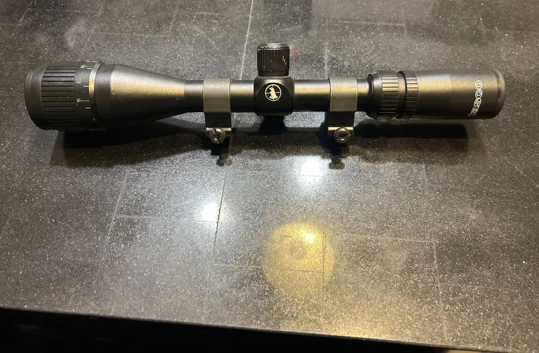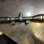 2.5-10. Not used very much sat of rifle overall good condition works just fine. Few scratches on caps. No dents. Shipping available. Comes with rings. 50$ shipped
