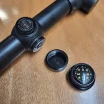 "The Universal 3-9x32 Illuminated Rifle Scope (Model 9601) is an optic manufactured in Japan, likely dating back to the late 20th century. It is characterized by its distinctive compass cap design, which typically includes a small liquid-filled compass built into one of the adjustment turret caps."