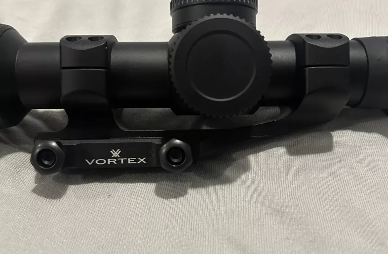 pretty much brand new about 50-75 rounds of .223. works amazing, clear and holds zero perfectly. comes with the vortex mount.