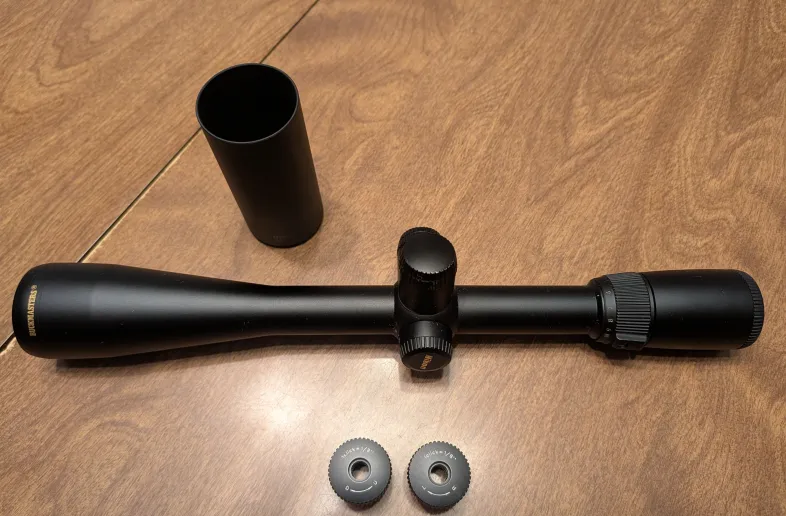 Great little scope. Clear glass, and has BDC reticle. Has second set of turrets and a sun shade. Has a small ring mark on bottom of tube, doesn't at all effect tracking and holds zero.