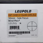 Leupold VX-5HD 3-15x44 CDS ZL2, 30mm tube with a Wind-plex reticle.