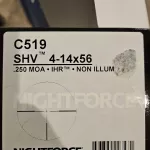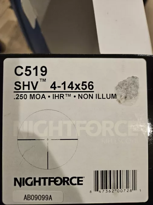Nightforce shv 4-14. Capped turrets, duplex reticle. Selling because moving to ffp mil scopes.