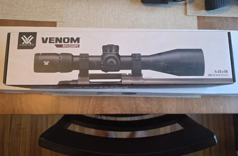 Vortex Venom 5-25 x 56 EBR-7C MRAD Scope For Sale. Scope has never been used. Originally purchased November 2022 for a long-range build which was never completed. In excellent condition.