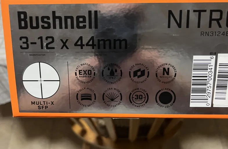 Bushnell Nitro 3-12x44 multi x crosshairs. Excellent to new condition. Was mounted on rifle but never used it. Comes sunshade and flip up end caps. $350 plus shipping