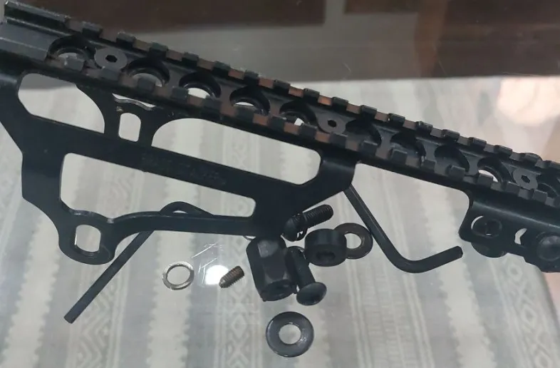 High see through rail for the mosin, comes will all tools/parts. Had this guy running along with Mojo sights for a sweet dual combo of target sights + glass. Eventually upgraded to a custom bull barrel that has no front sight, and had to drill/tap.
