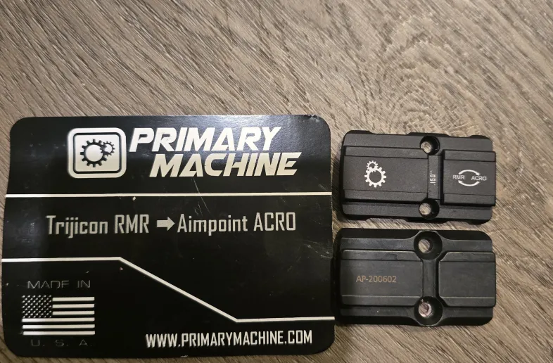 Like New Primary Machine RMR to Acro mounts. One is .250 height and the other is .150 height. Includes screws. No trades. Located in Haldimand. Can meet up within reason or ship on buyers dime.