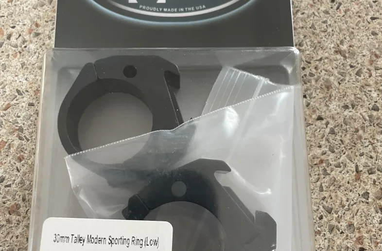 I have a set of Talley modern sporting rings for sale. 30mm low. Brand new, never been taken out of the packaging. $100 plus shipping. Located in Salmon Arm, BC