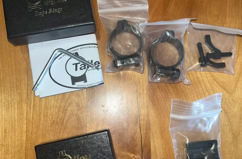 Talley quick detach rings (levers) with bases for a sako IV,V rifle. $50 dollar discount from taxed retail price. Never used, brand new, original packaging.