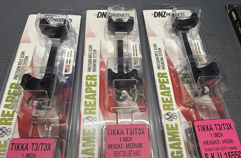 Brand new DNZ Game Reaper one-piece scope mounts for Tikka T3 / T3X rifles. Precision-machined, lightweight, and extremely strong. These mounts are known for excellent return-to-zero and a clean, simple install—no separate bases required.