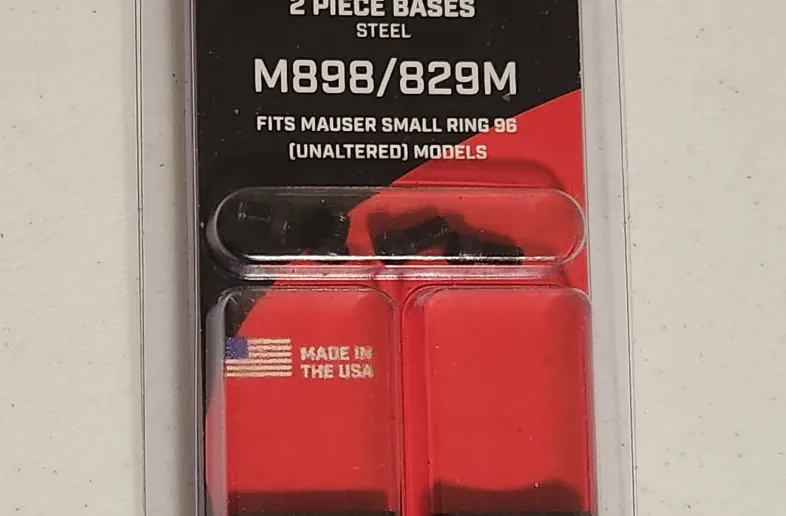 These are new, never mounted bases for a Small Ring Mauser. The description states "Unaltered", meaning the rear base is designed to mount with the charging lip in place. $35 shipped.