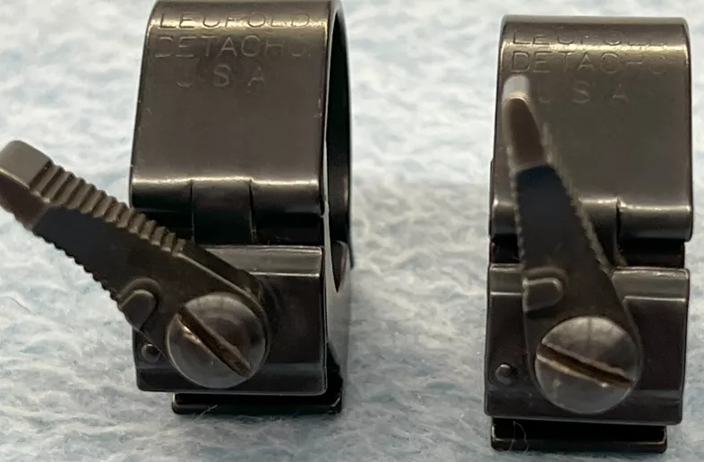 Leupold detachable 1" rings. Rear base has built in peep site.