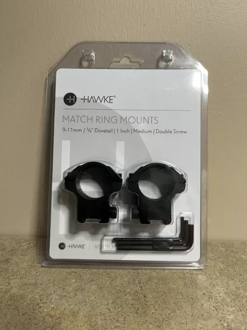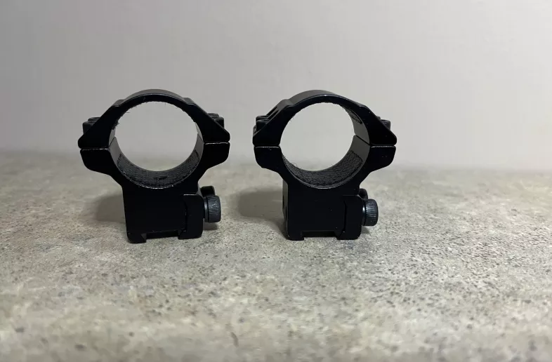 Part #22101. 1", medium height, double screw rings foe 11mm or 3/8" dovetails. In new condition - these were too high for my application and immediately replaced with lower rings.