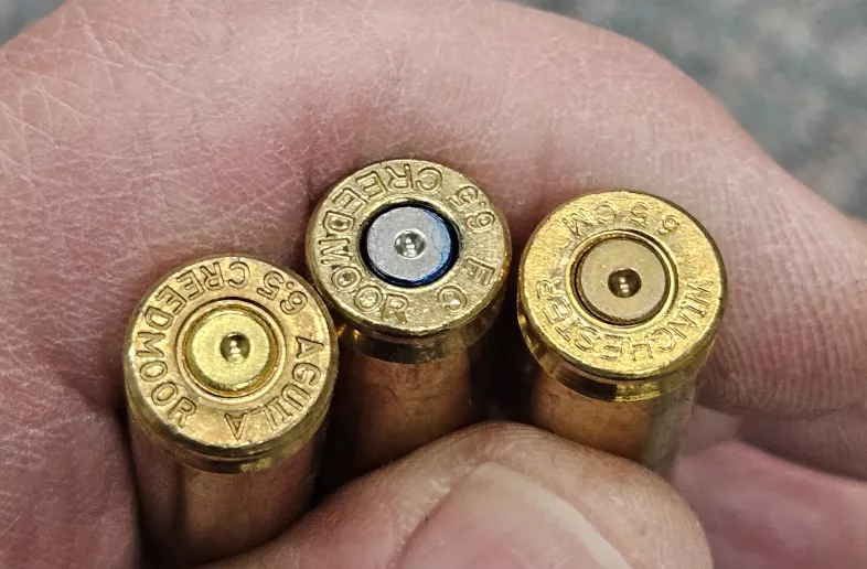 77 pieces once fired. Mixed lot. Not cleaned, not deprimed. Federa, winchester and Aguila.