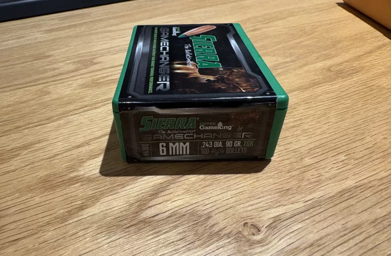 100pcs 90gr Sierra TGKs (unopened box) and 26 pcs Hornady Interlocks. For sale as my new 243 has a slow twist barrel.