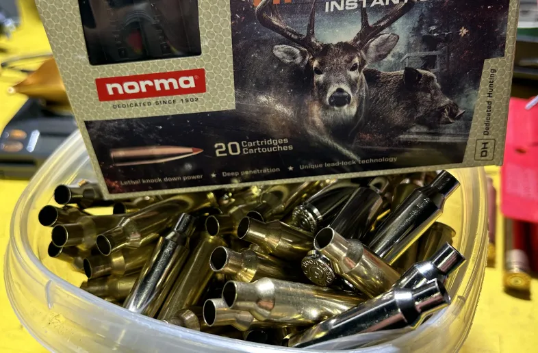 6.5 Creedmore once fired brass. 159 pieces. Mostly brass with a few nickel. Mixed head stamps. Also have a box of 15 live rounds of Norma 140 gr Tipstrike and 2 odd rounds of 6.5. PAL required for the live rounds, [LIVE AMMO IS $40.00 CALGARY)